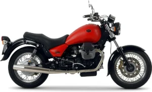 The 2000 Moto-Guzzi California Jackal 1100, in the Custom category, is powered by a 90° L-twin 4-stroke engine developing 74 HP (54.4 kW), for a dry weight of 246 kg.