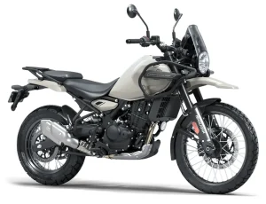 The 2025 Royal-Enfield Himalayan 450, in the Trail category, is equipped with a single-cylinder, 4-stroke engine, developing 40 hp (29.4 kW), for a curb weight of 196 kg (181 kg dry).