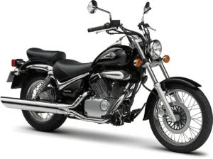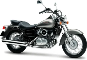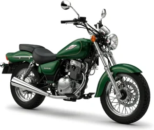 The 2000 Suzuki Marauder 125, in the Custom category, is powered by a single-cylinder, 4-stroke engine developing 10 HP (7.4 kW), for a dry weight of 125 kg.